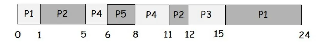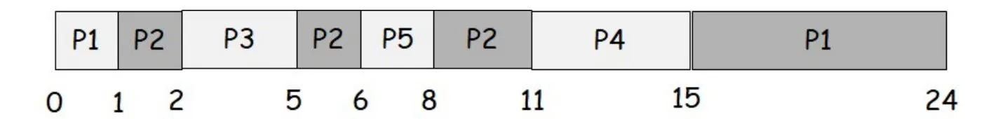Note: At any given time, a newly arriving process is put to the back of the ready queue before the executing process is preempted. That is, the preempted process is always the last process in the ready queue. If there is a tie in scheduling between two processes, the process with the smaller id is preferred.