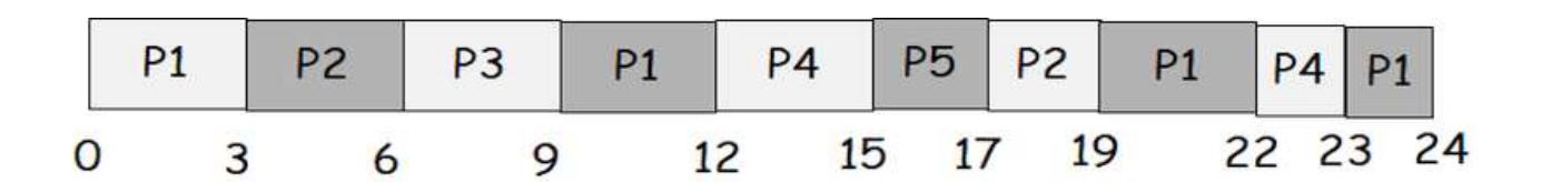 (c) Round Robin Scheduling with a time quantum of 3