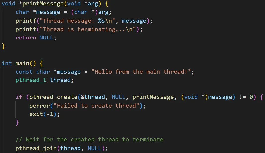 Section titled “Thread Termination/Multi-threaded Process Termination”To terminate, the thread calls pthread_exit()