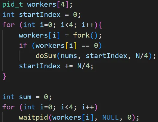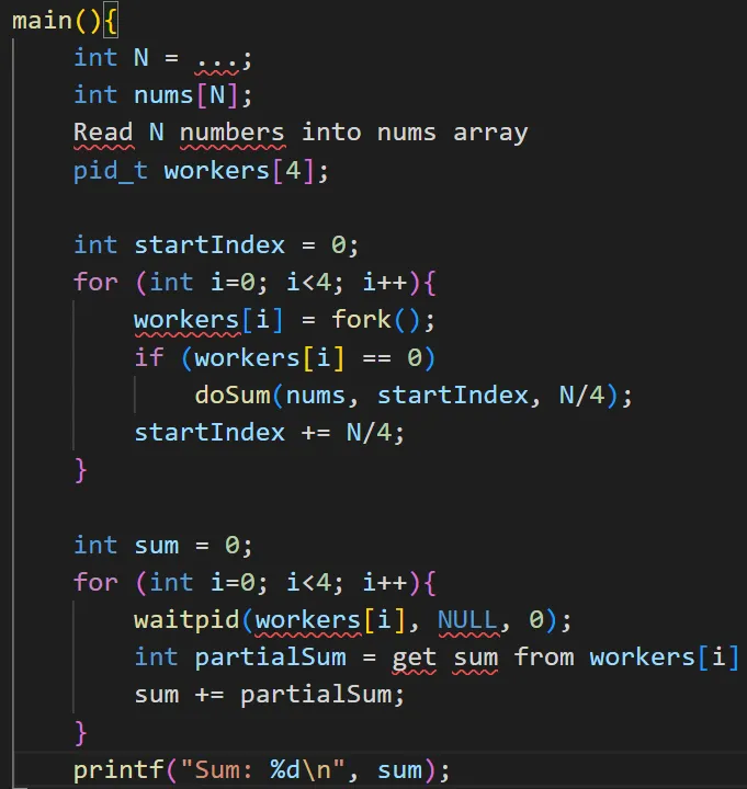 fork() 4 copies of itself, each computing the sum of N/4 numbers